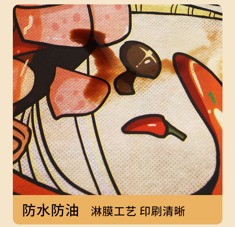 • 广告宣传:无纺布覆膜外卖袋可以作为商家的广告宣传工具,客户可以在袋子上印上自己的品牌LOGO或宣传语,增加品牌曝光率。